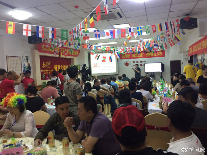 2018年6月22日晚,60余位痛風(fēng)患者及家屬一起歡聚沈陽抗風(fēng)竤中醫(yī)門診二樓多功能廳,和抗風(fēng)竤的醫(yī)生、護士、康復(fù)指導(dǎo)師們,一起度過了個難忘的世界杯之夜。