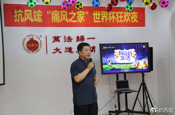 此次舉辦抗風(fēng)竤“痛風(fēng)之家”世界杯狂歡之夜活動就是借俄羅斯世界杯之機,將“綠色安全、尊重自然”的防痛風(fēng)、治痛風(fēng)理念傳播到廣大風(fēng)友中去,幫其提高如何正確治療痛風(fēng)的意識,讓風(fēng)友們在“吃喝玩樂中”趕走病痛,樂享人生。
