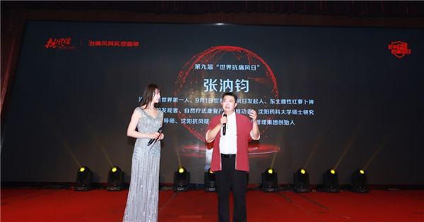 會上,主持人采訪了治愈痛風(fēng)世界第一人、沈陽藥科大學(xué)研究生導(dǎo)師、東北雌性紅蘿卜神奇療效的發(fā)現(xiàn)者、沈陽抗風(fēng)竤(綠色)醫(yī)療產(chǎn)業(yè)管理集團(tuán)創(chuàng)始人張汭鈞董事長。